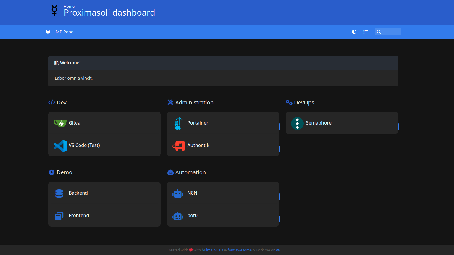 Now let's test it out with some app. I wanted to have all of my apps in one place, like a dashboard or home page. So this is what we are going to deploy. My choice fell on Homer. You can check out the final look of it: